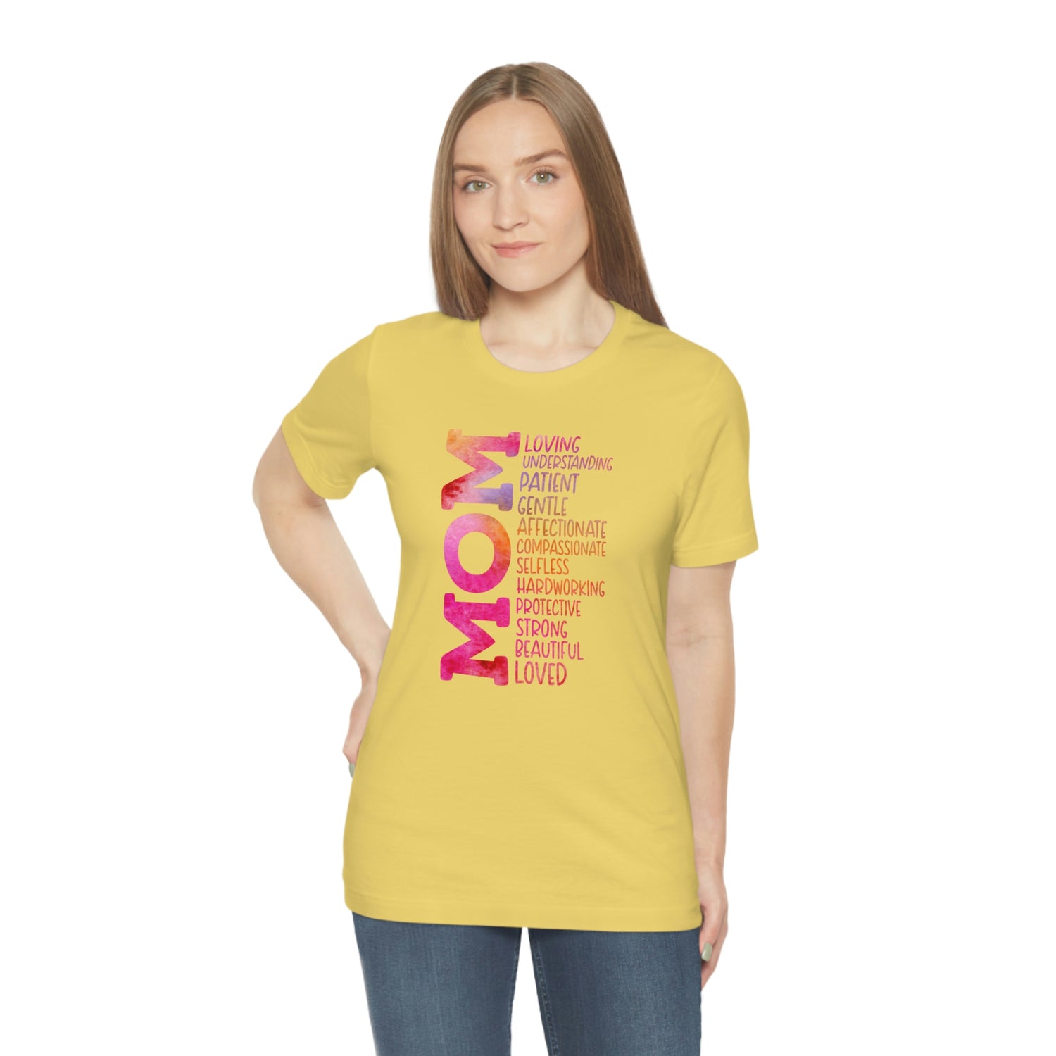 Descriptive Mom/Mother's Day/Gift / Cute Mom / Baby Shower / Mom List Unisex Jersey Short Sleeve Tee
