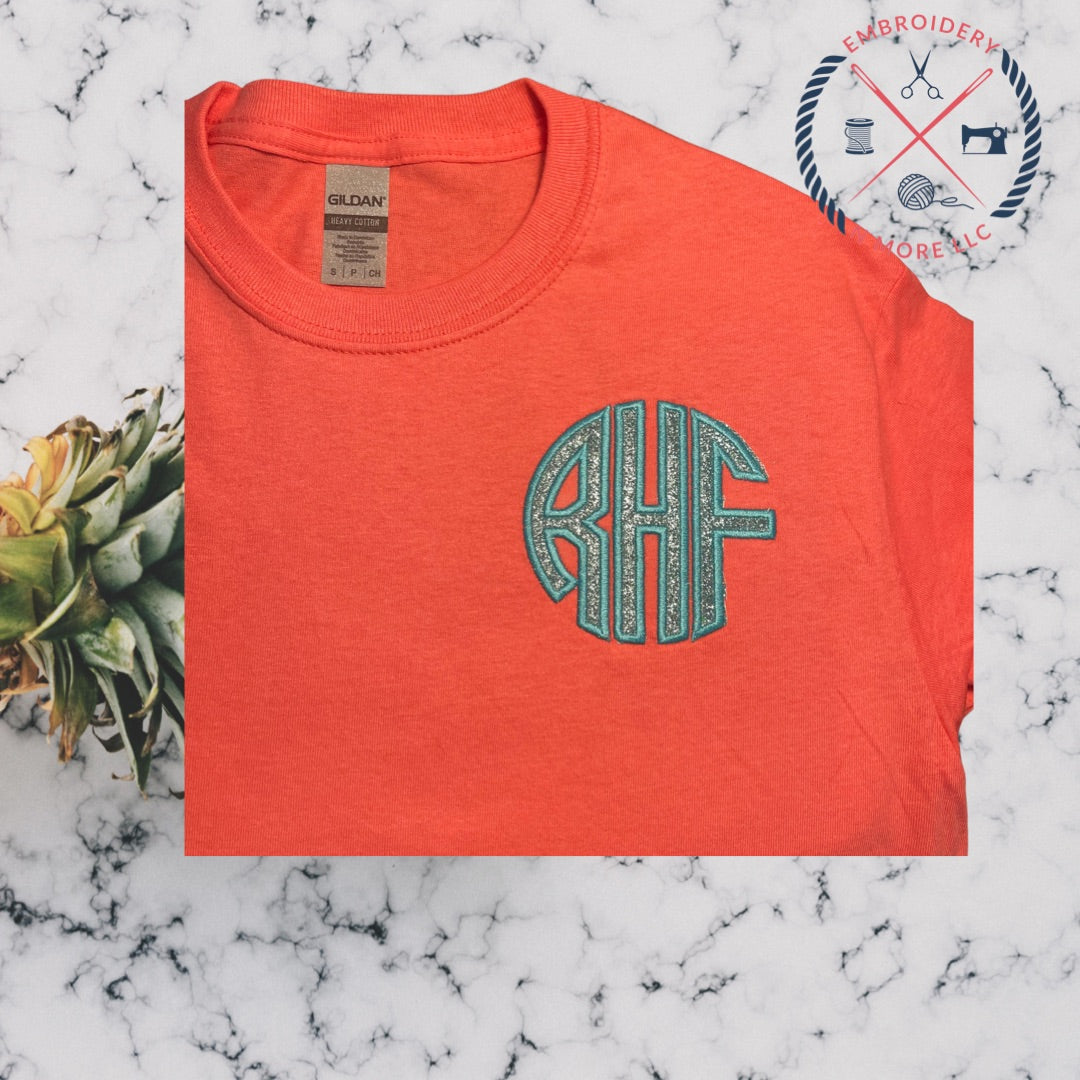 Super soft shirts are used(100% ringspun cotton). The embroidery is covered in the back to protect those with sensitive skin from irritation.