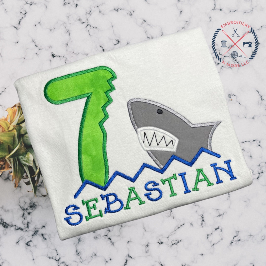 Shark Bite Birthday Shirt Embroidered/Applique T-Shirt