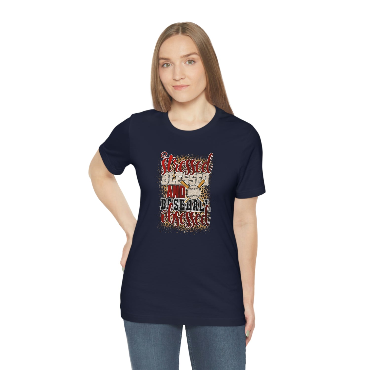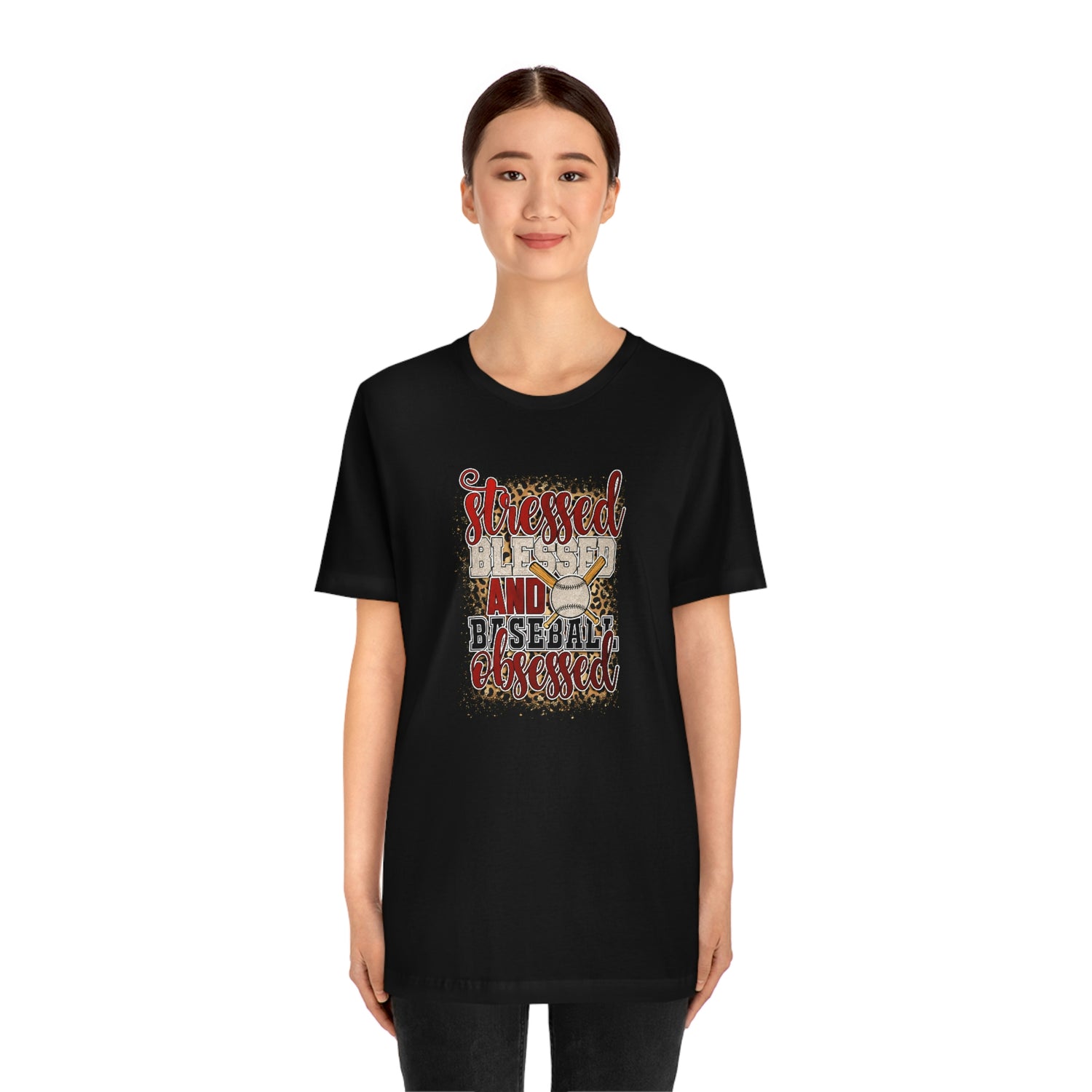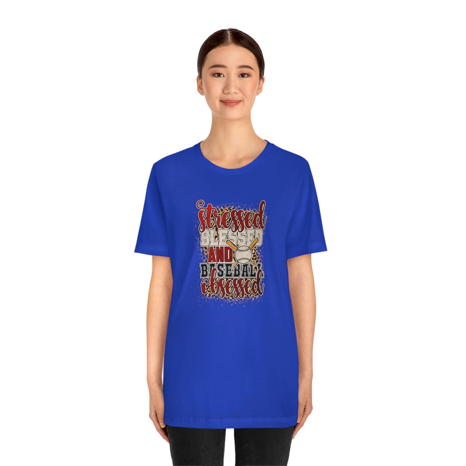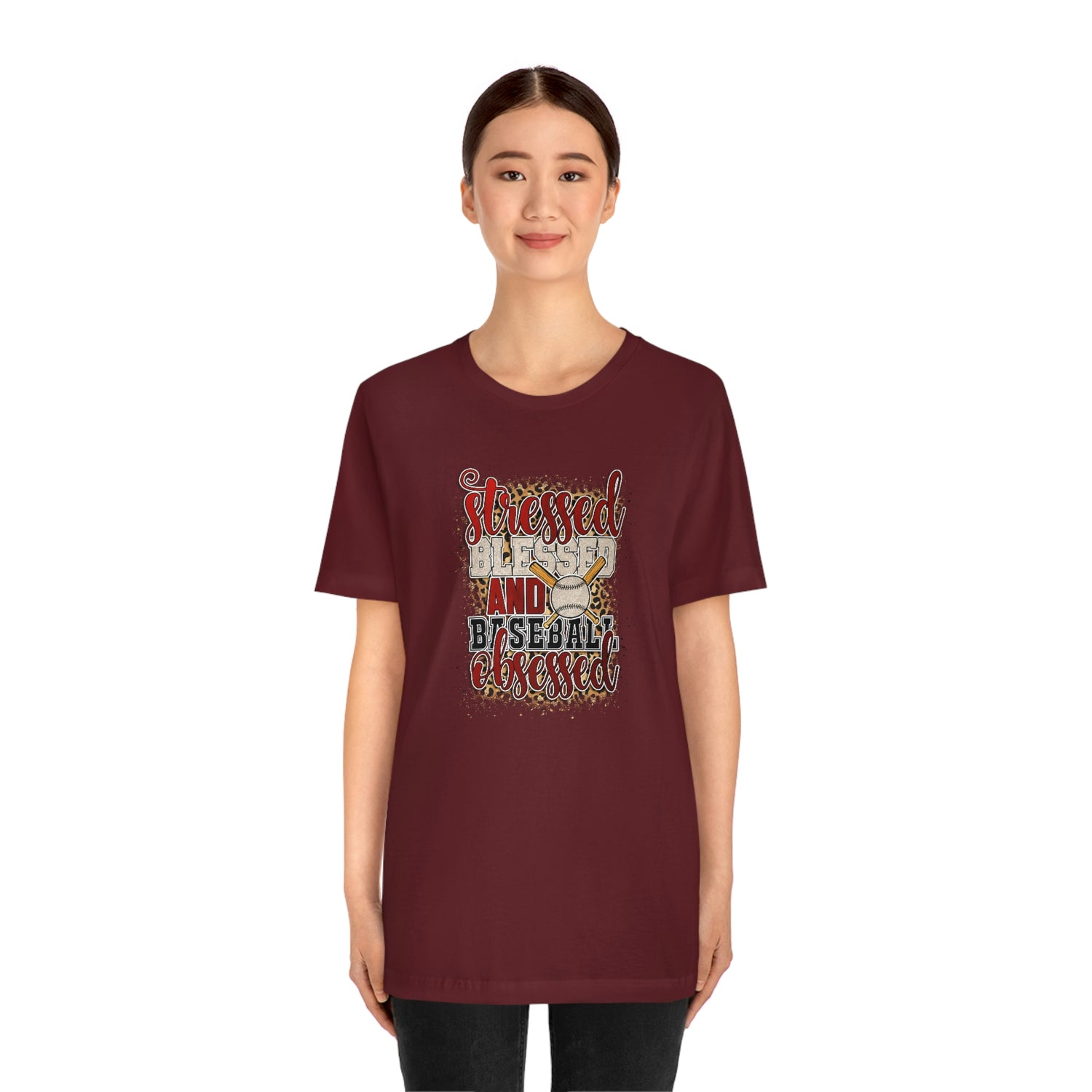 Stressed Blessed and Baseball Obsessed/ Baseball Mom Unisex Jersey Short Sleeve Tee Shirt