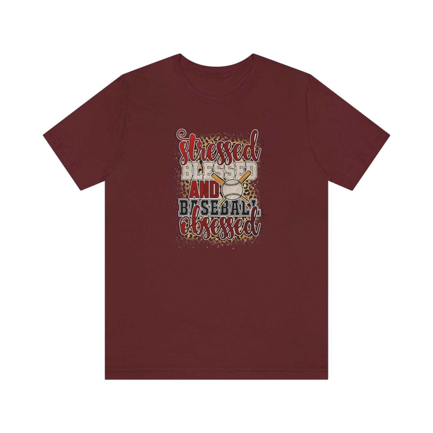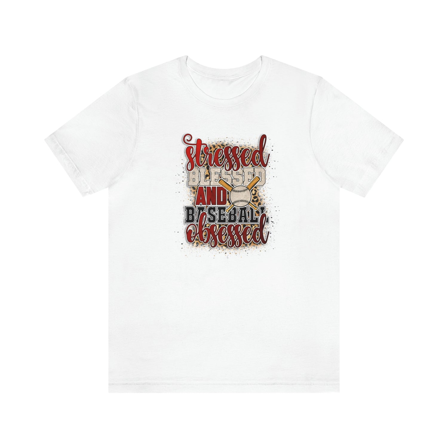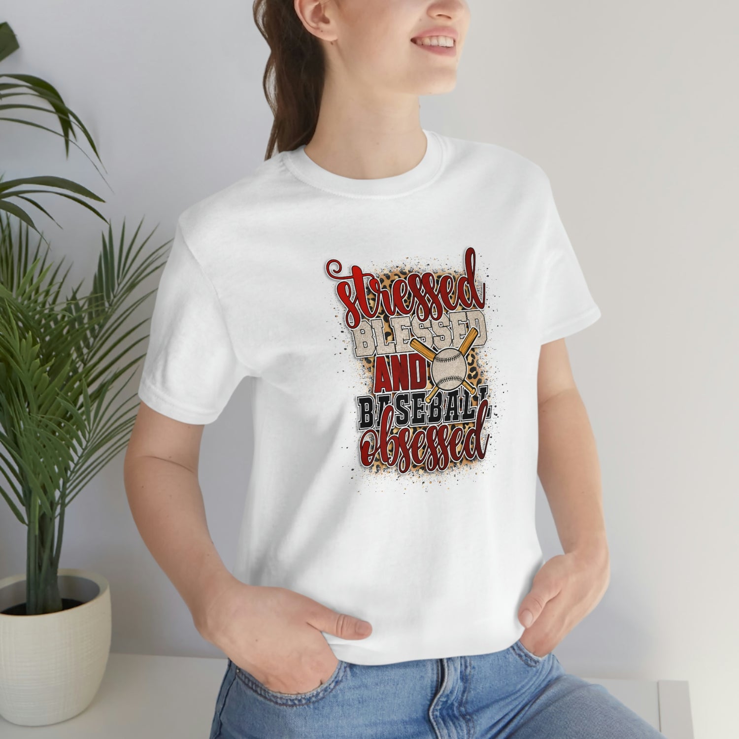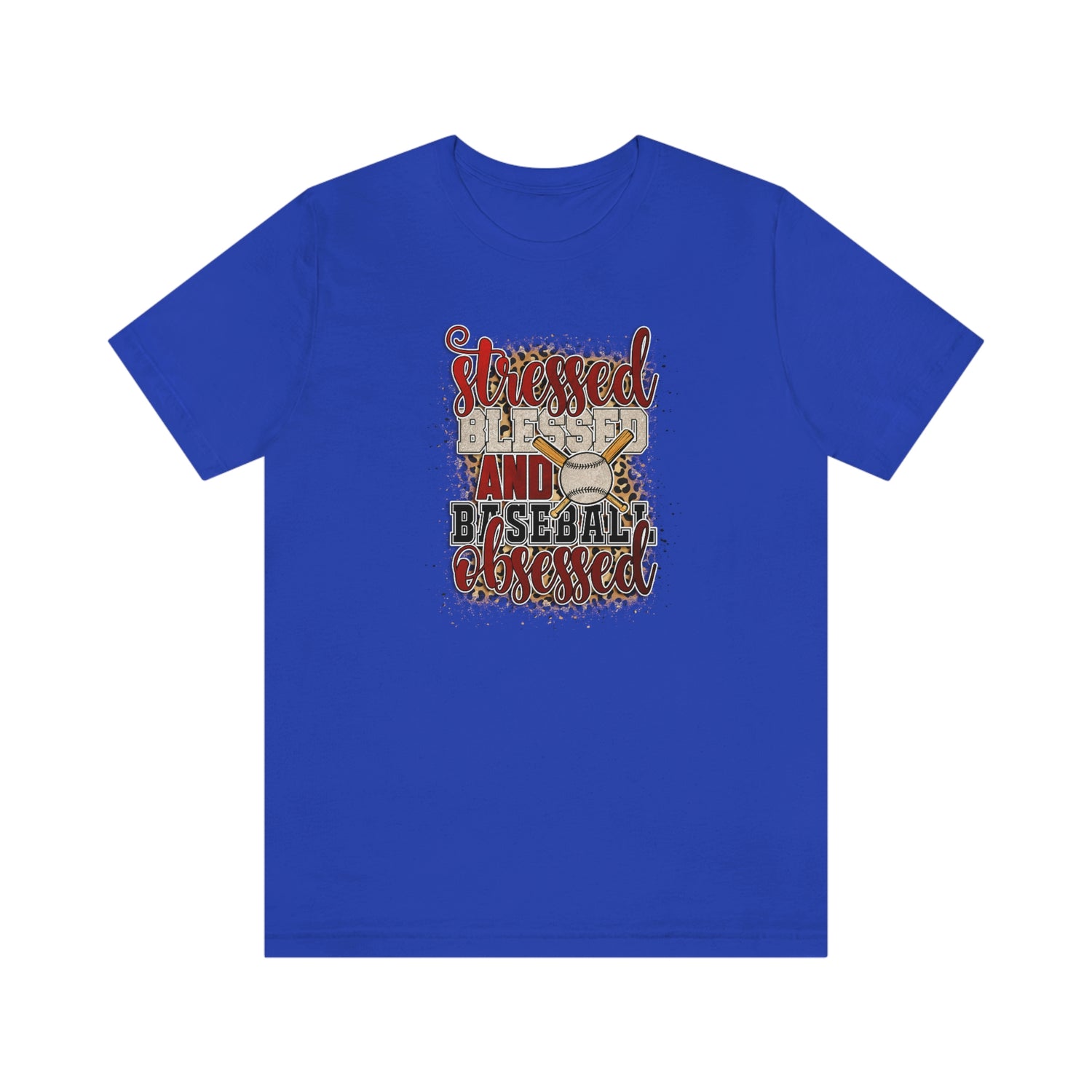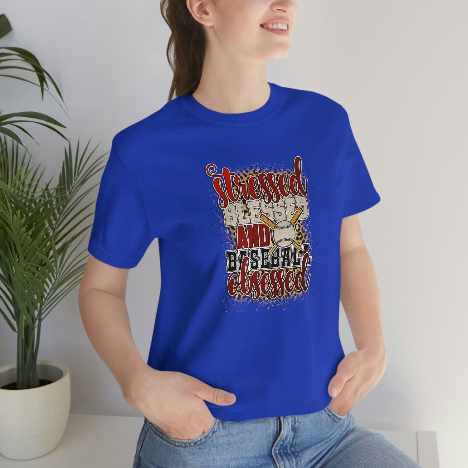 Stressed Blessed and Baseball Obsessed/ Baseball Mom Unisex Jersey Short Sleeve Tee Shirt