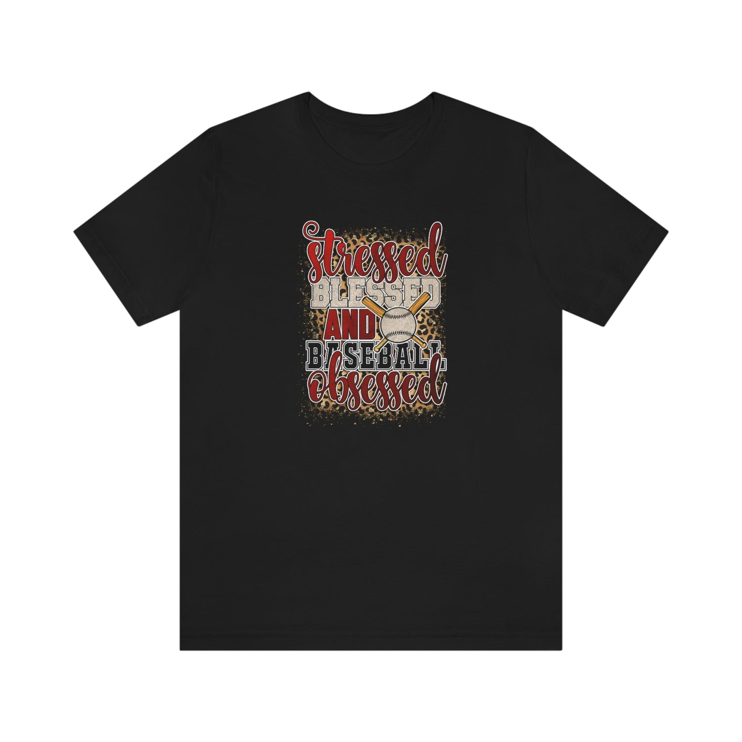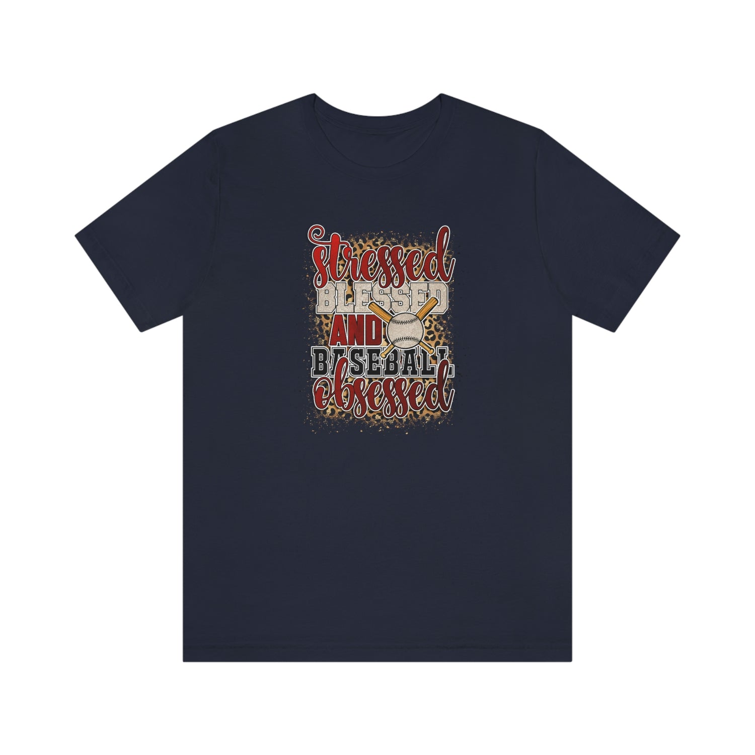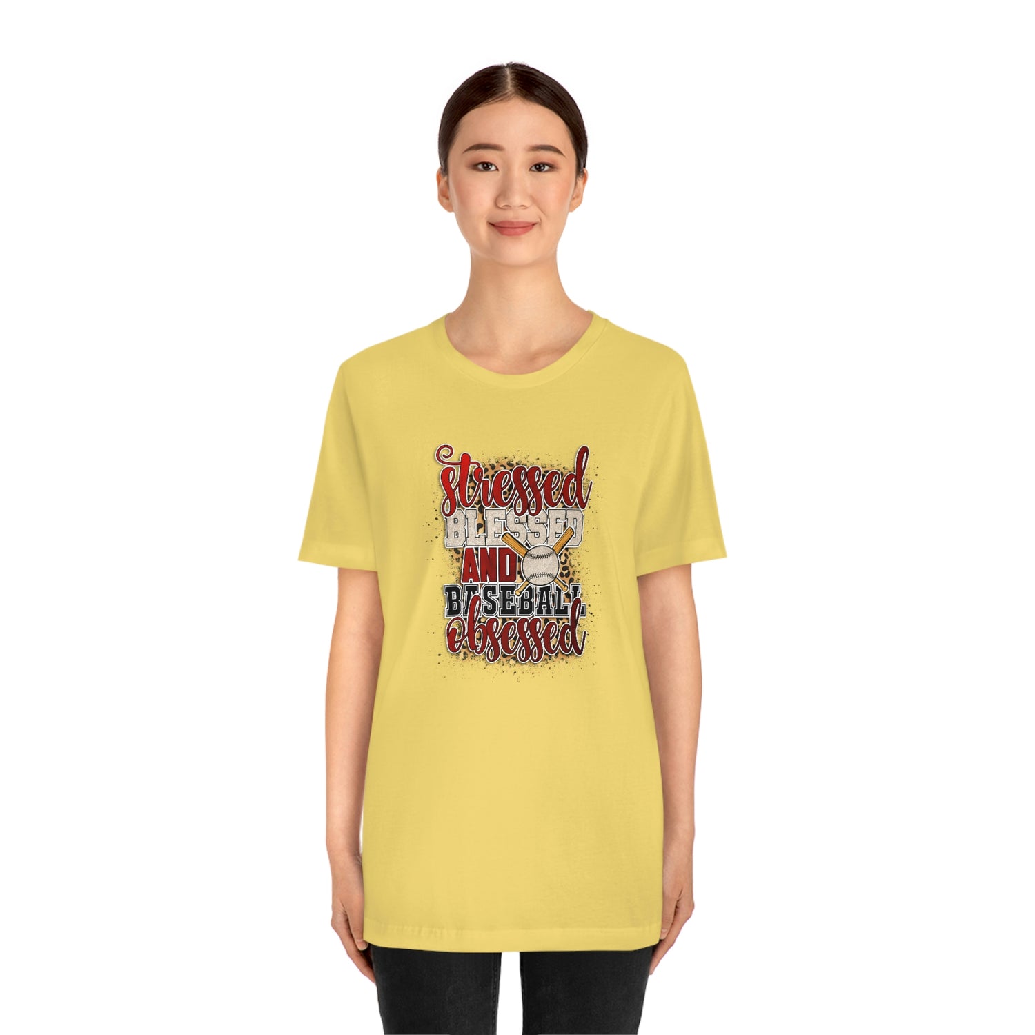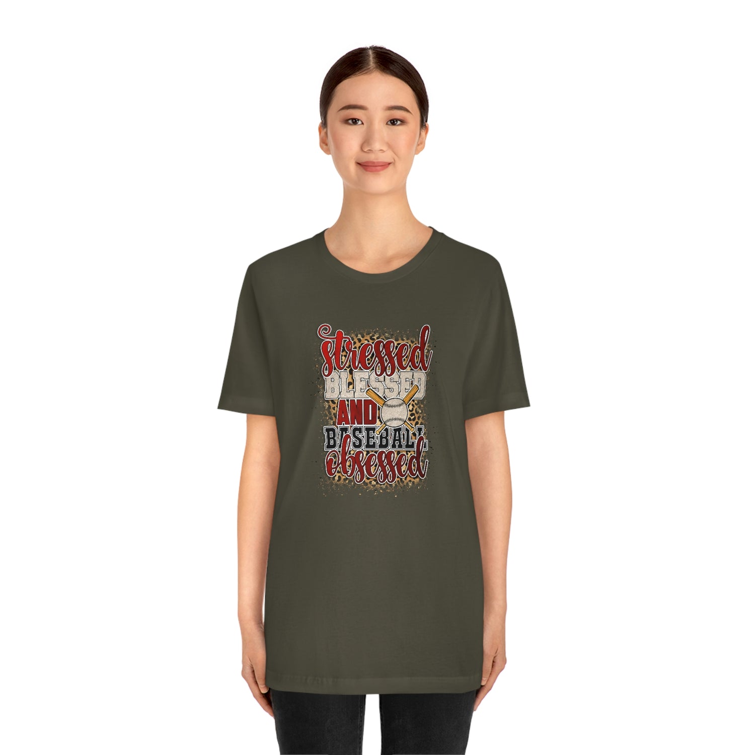 Stressed Blessed and Baseball Obsessed/ Baseball Mom Unisex Jersey Short Sleeve Tee Shirt