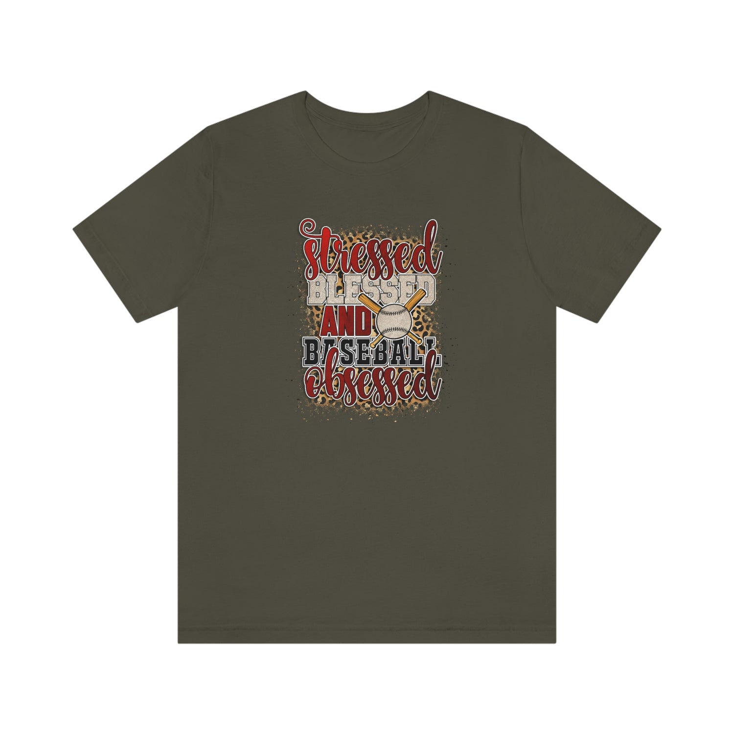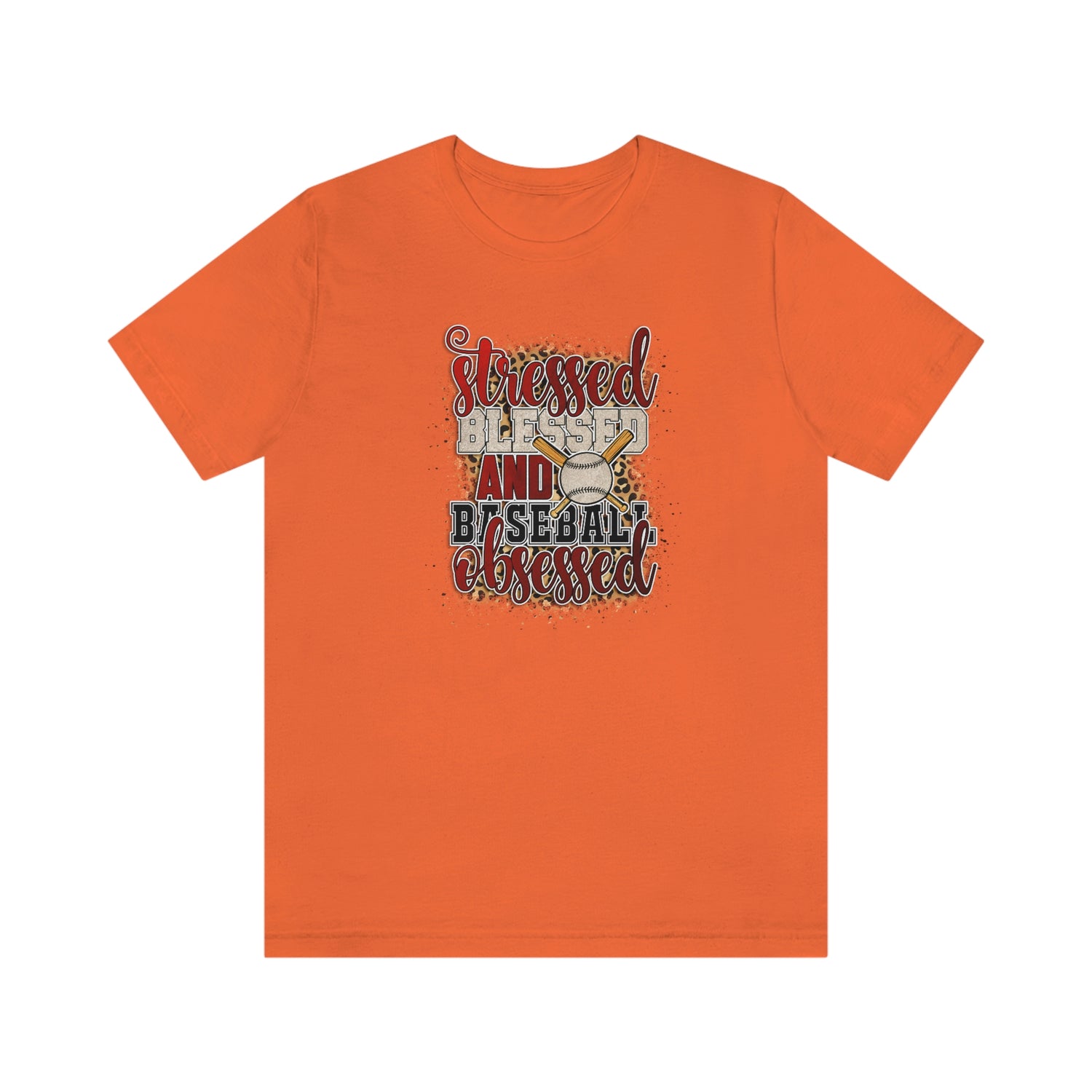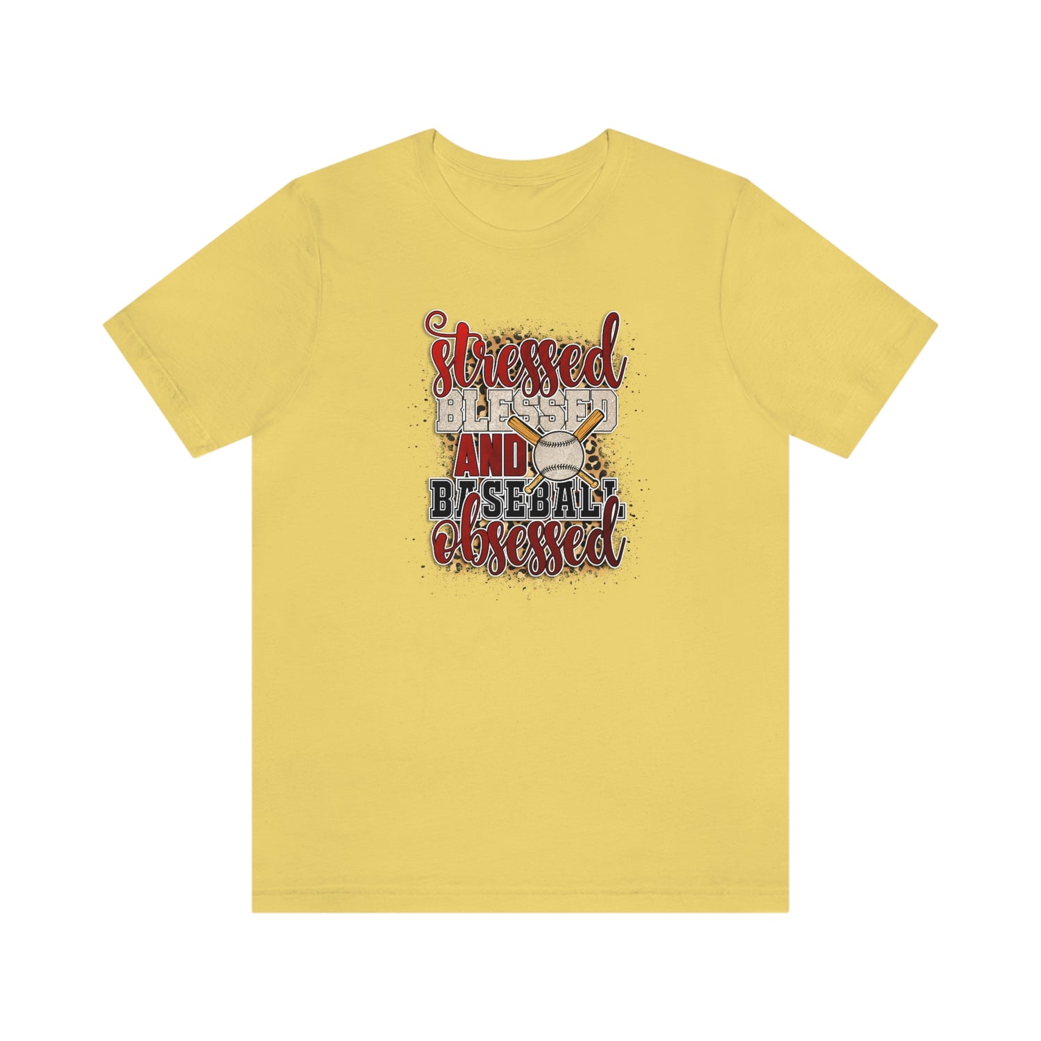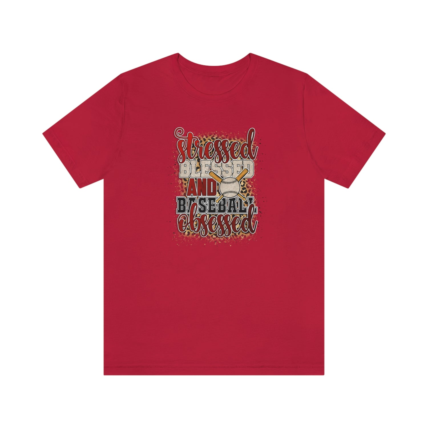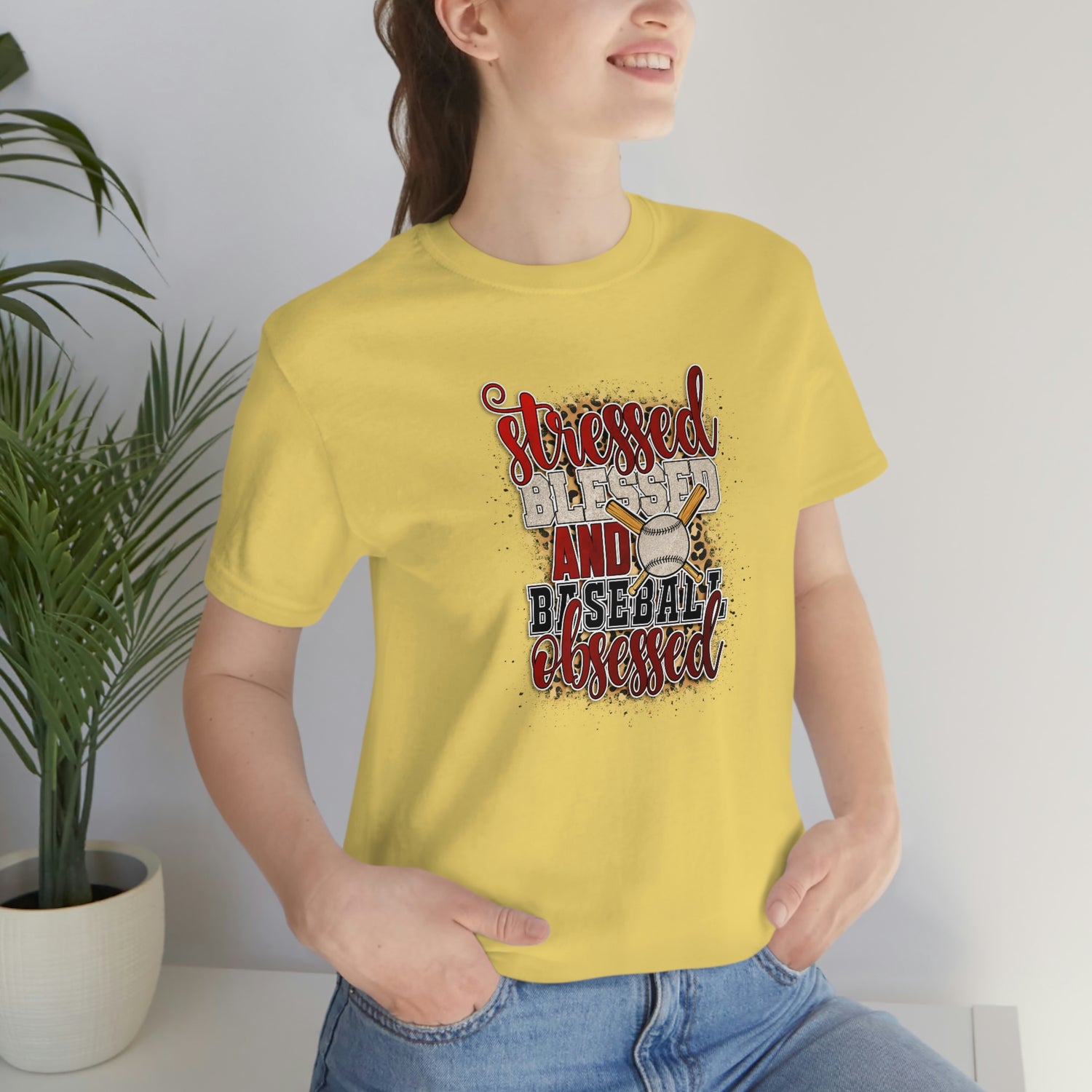 Stressed Blessed and Baseball Obsessed/ Baseball Mom Unisex Jersey Short Sleeve Tee Shirt