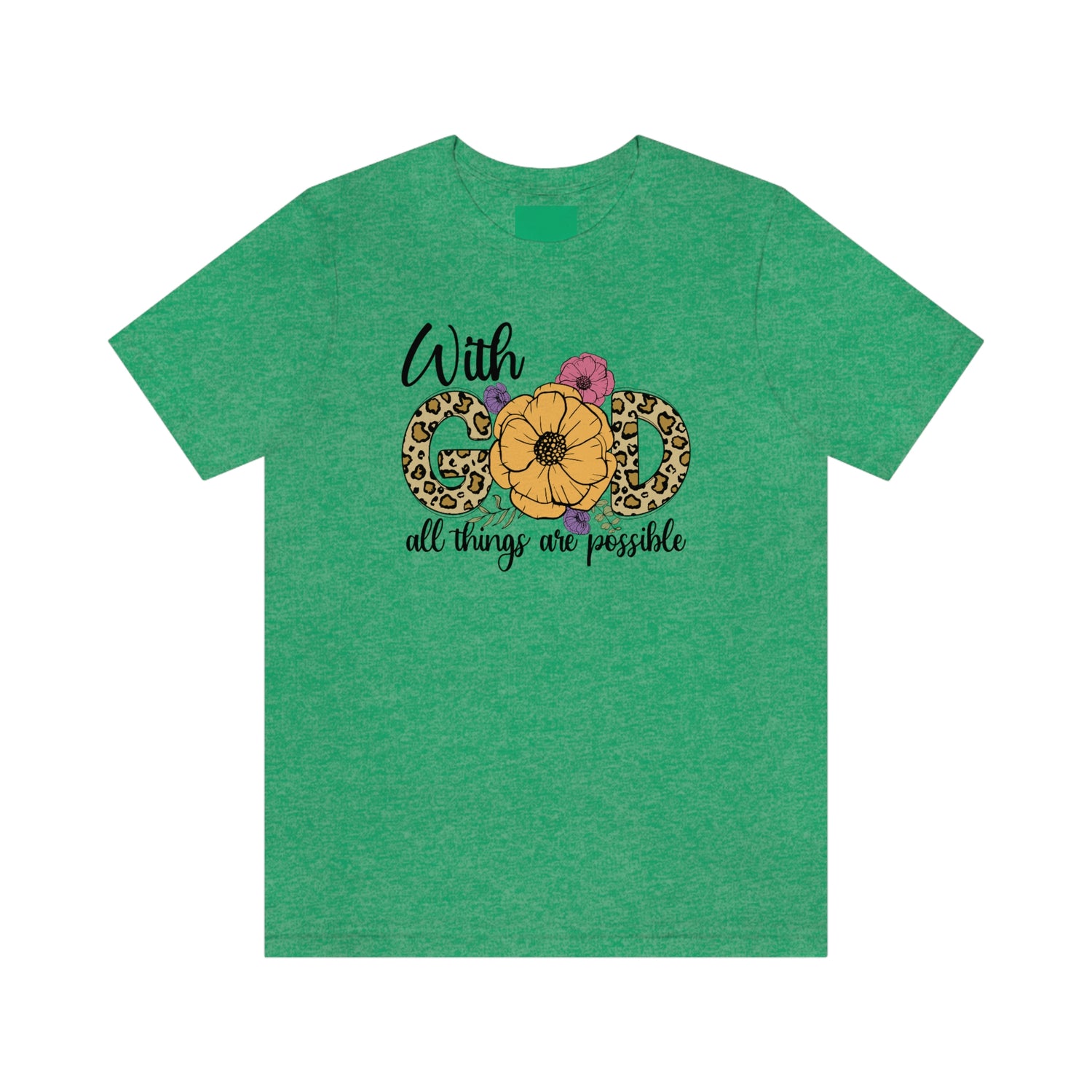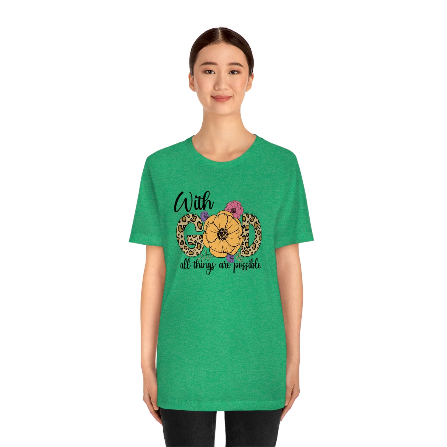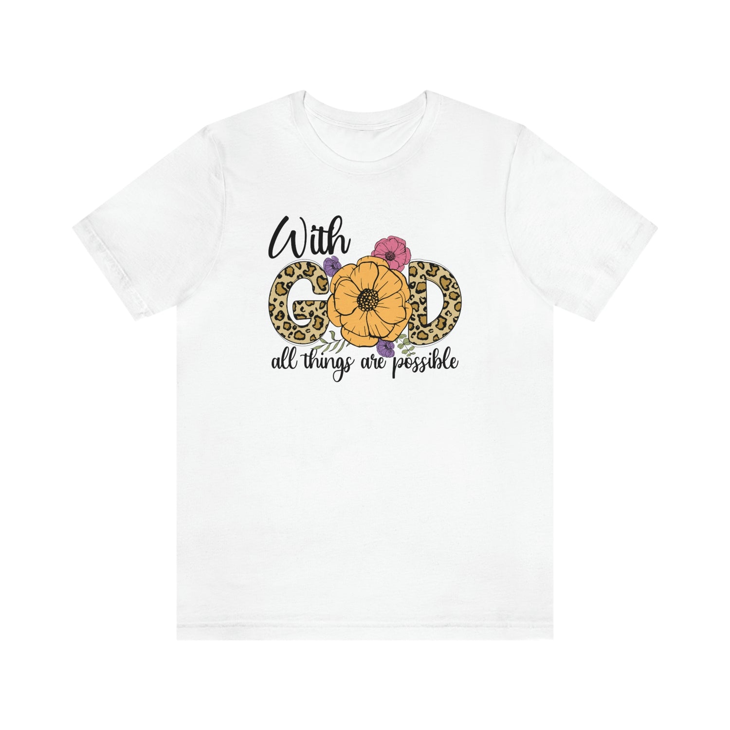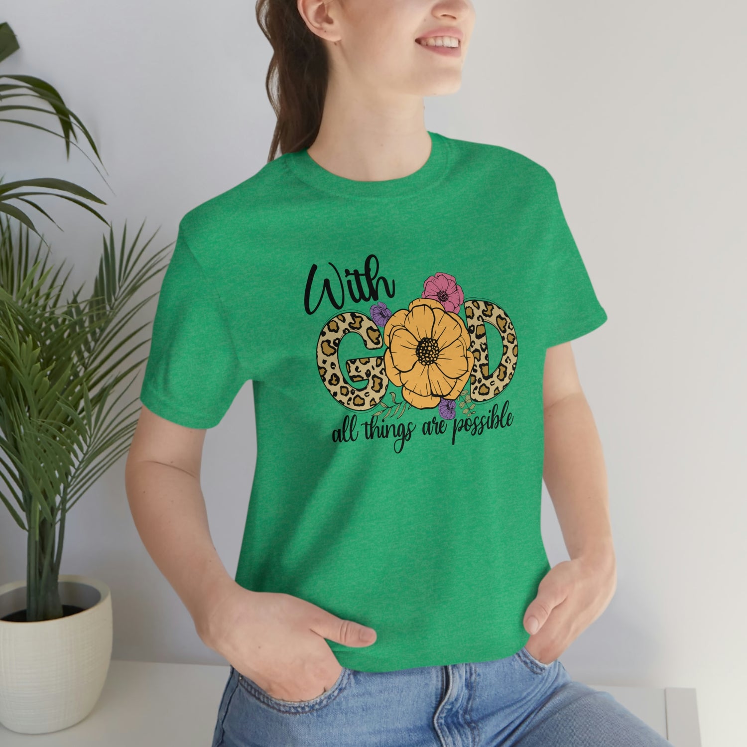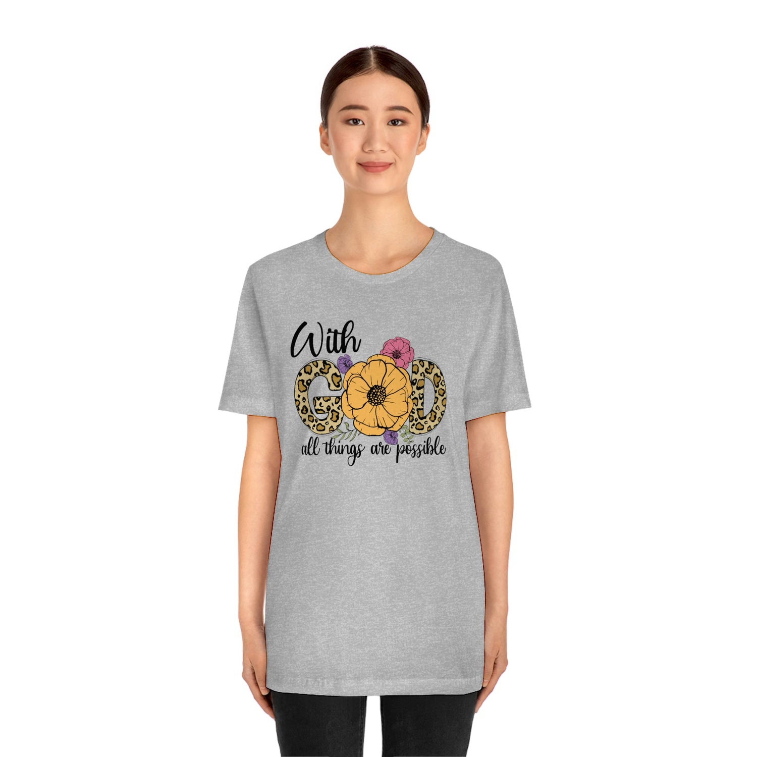 With God All Things Are Possible/ Faith/Christian/ Gift/ Cute Unisex Jersey Short Sleeve Tee Shirt