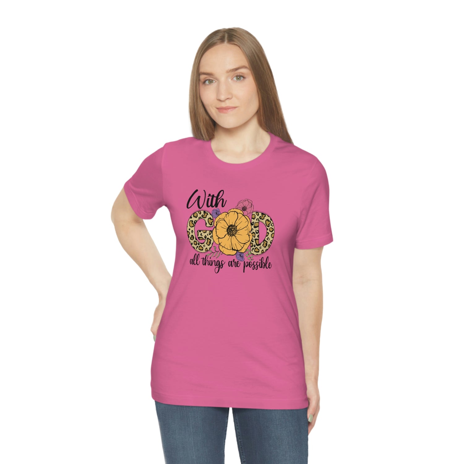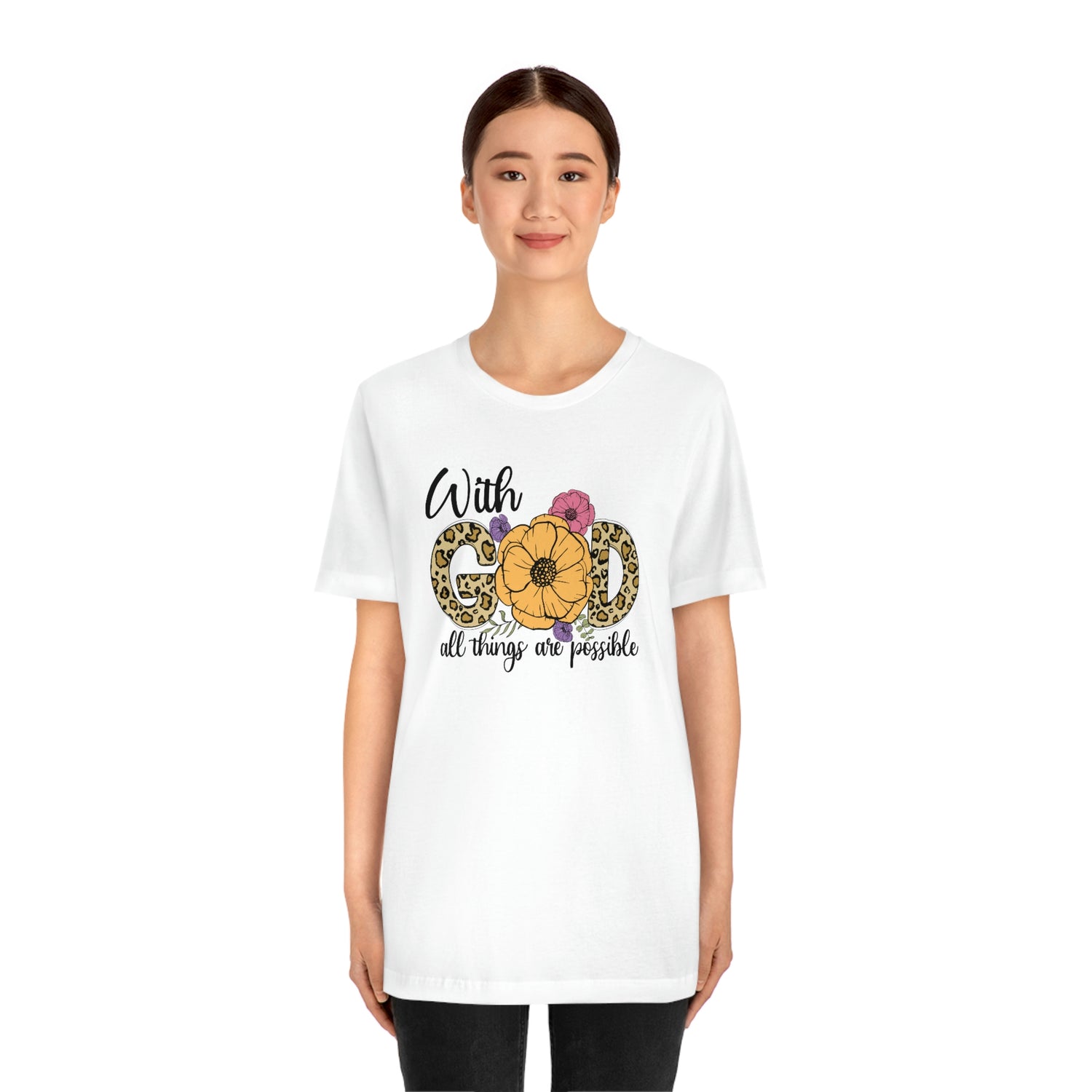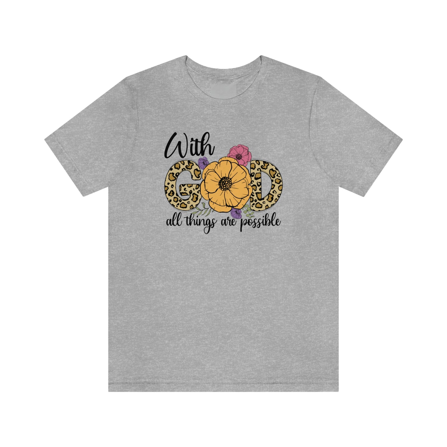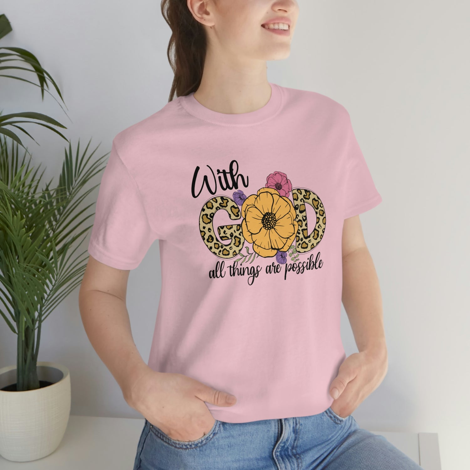 With God All Things Are Possible/ Faith/Christian/ Gift/ Cute Unisex Jersey Short Sleeve Tee Shirt