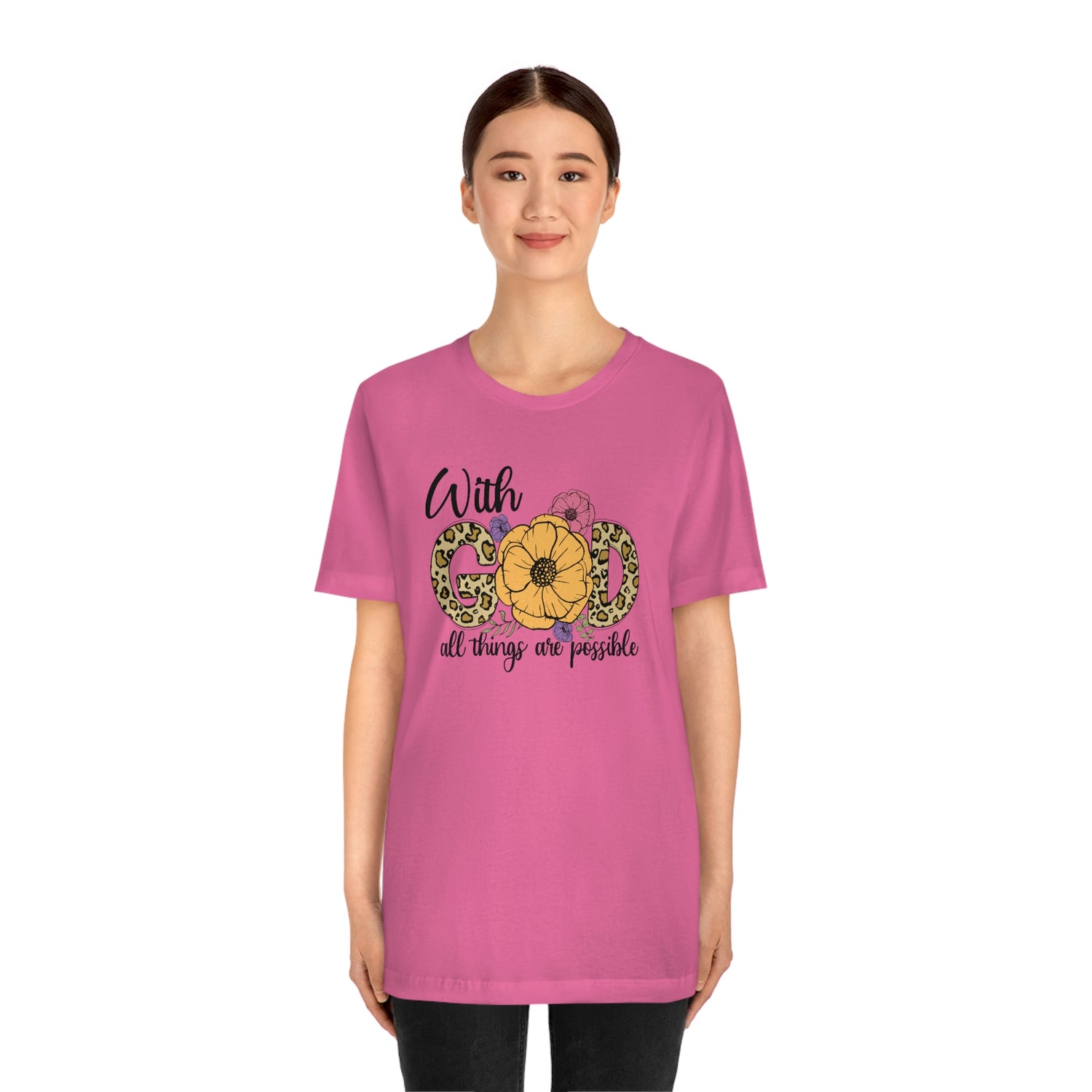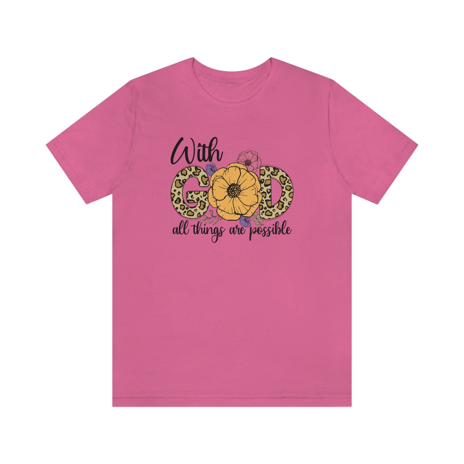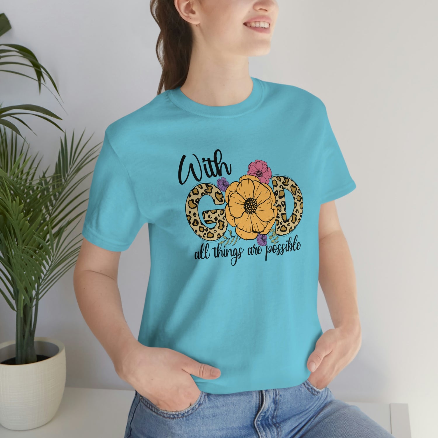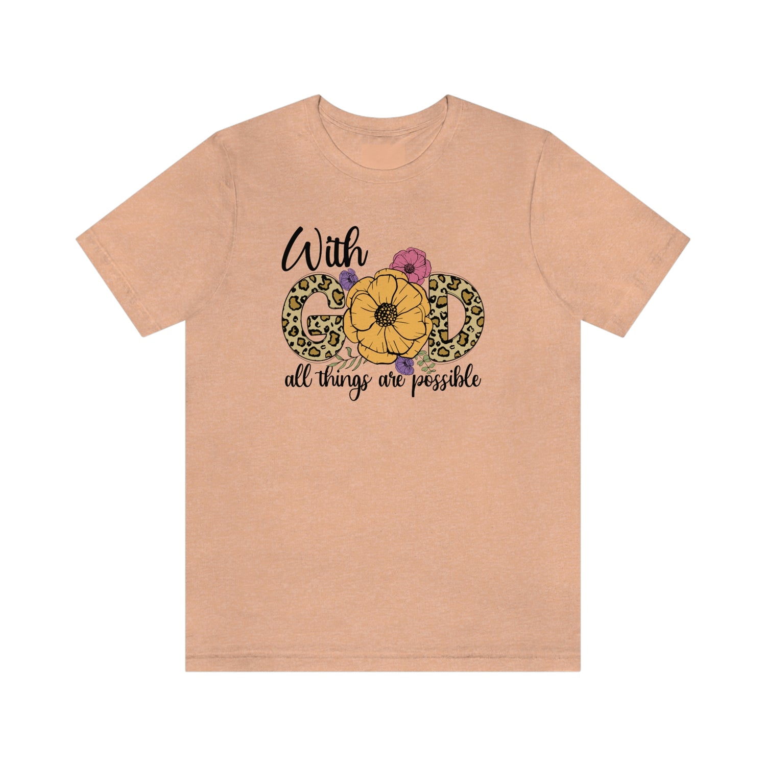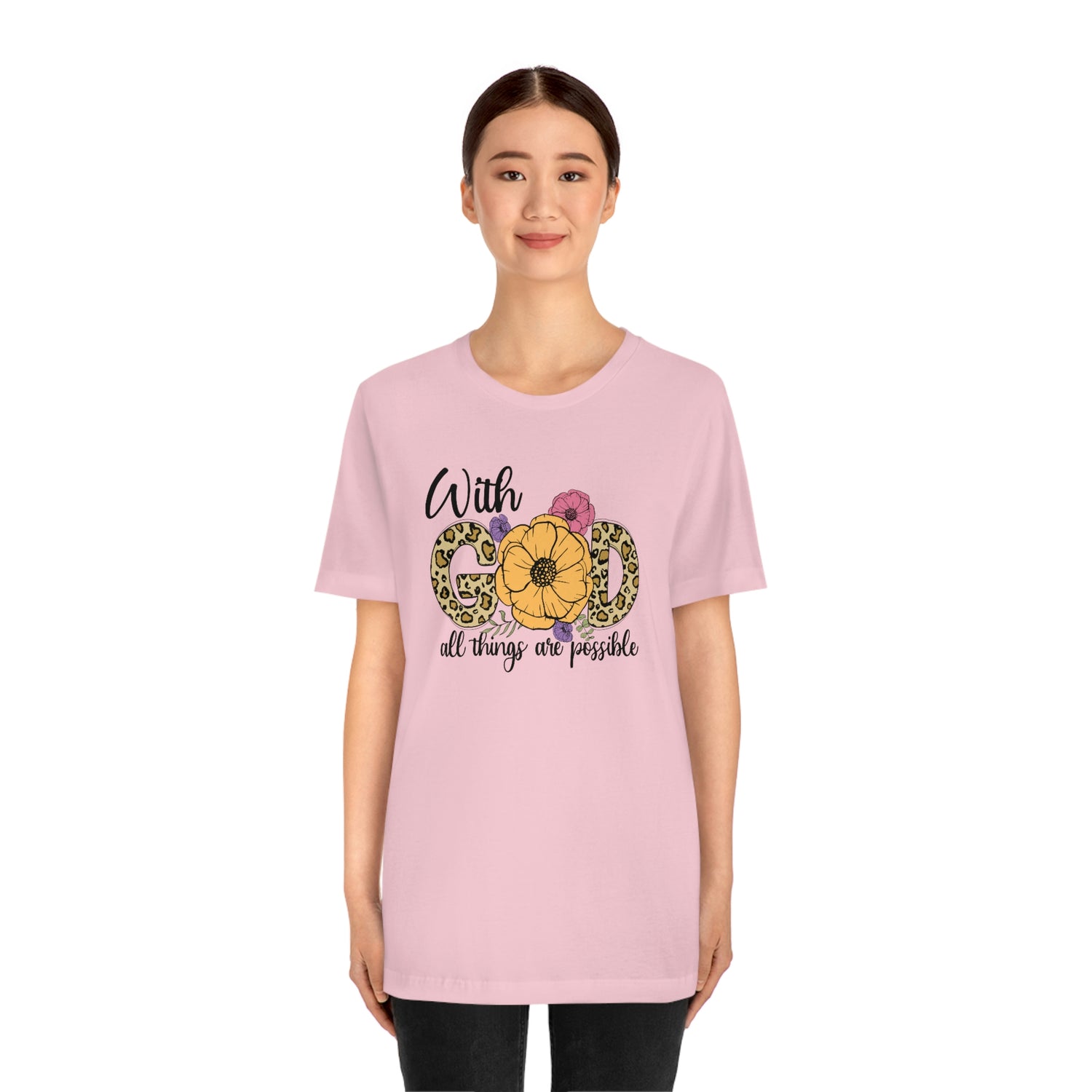 With God All Things Are Possible/ Faith/Christian/ Gift/ Cute Unisex Jersey Short Sleeve Tee Shirt