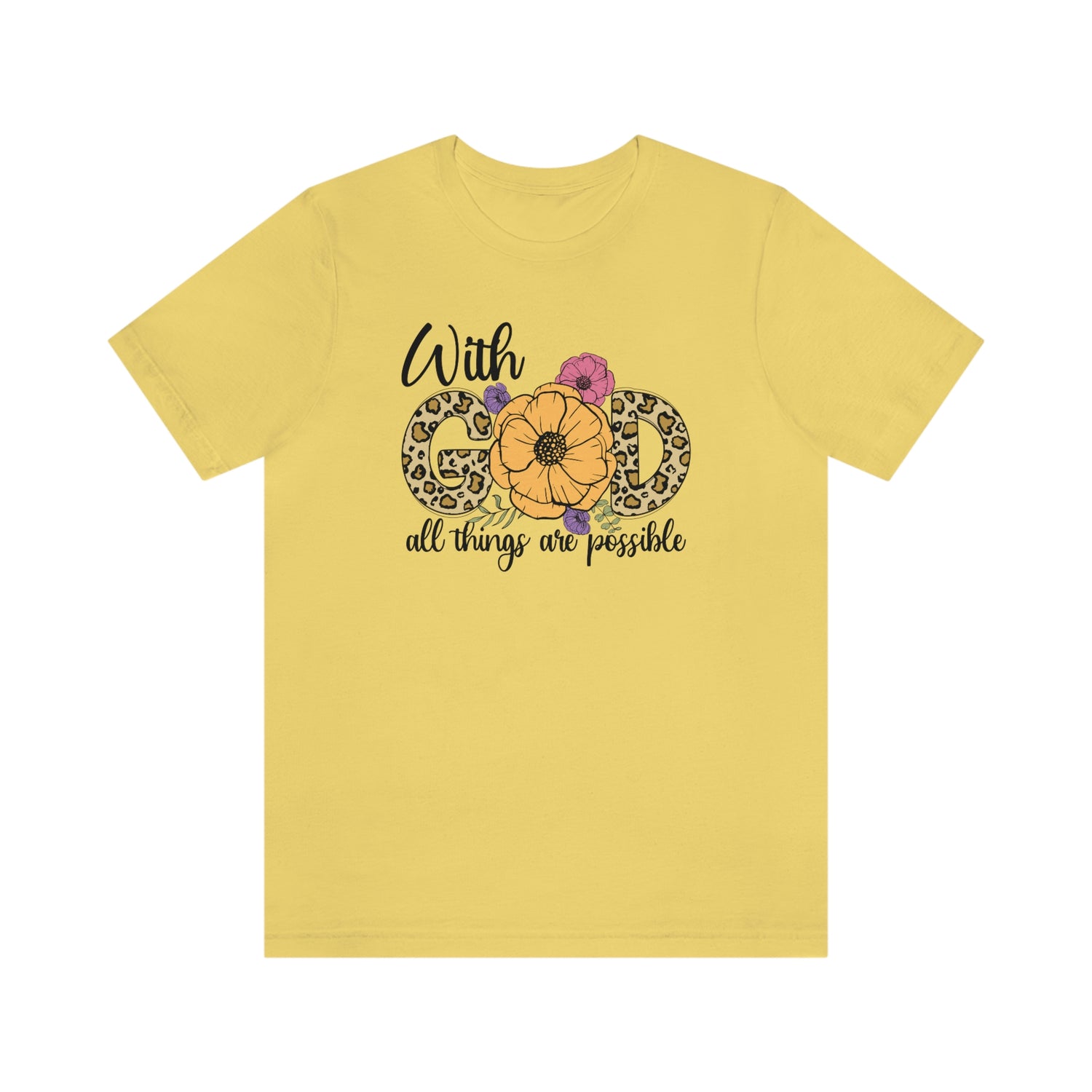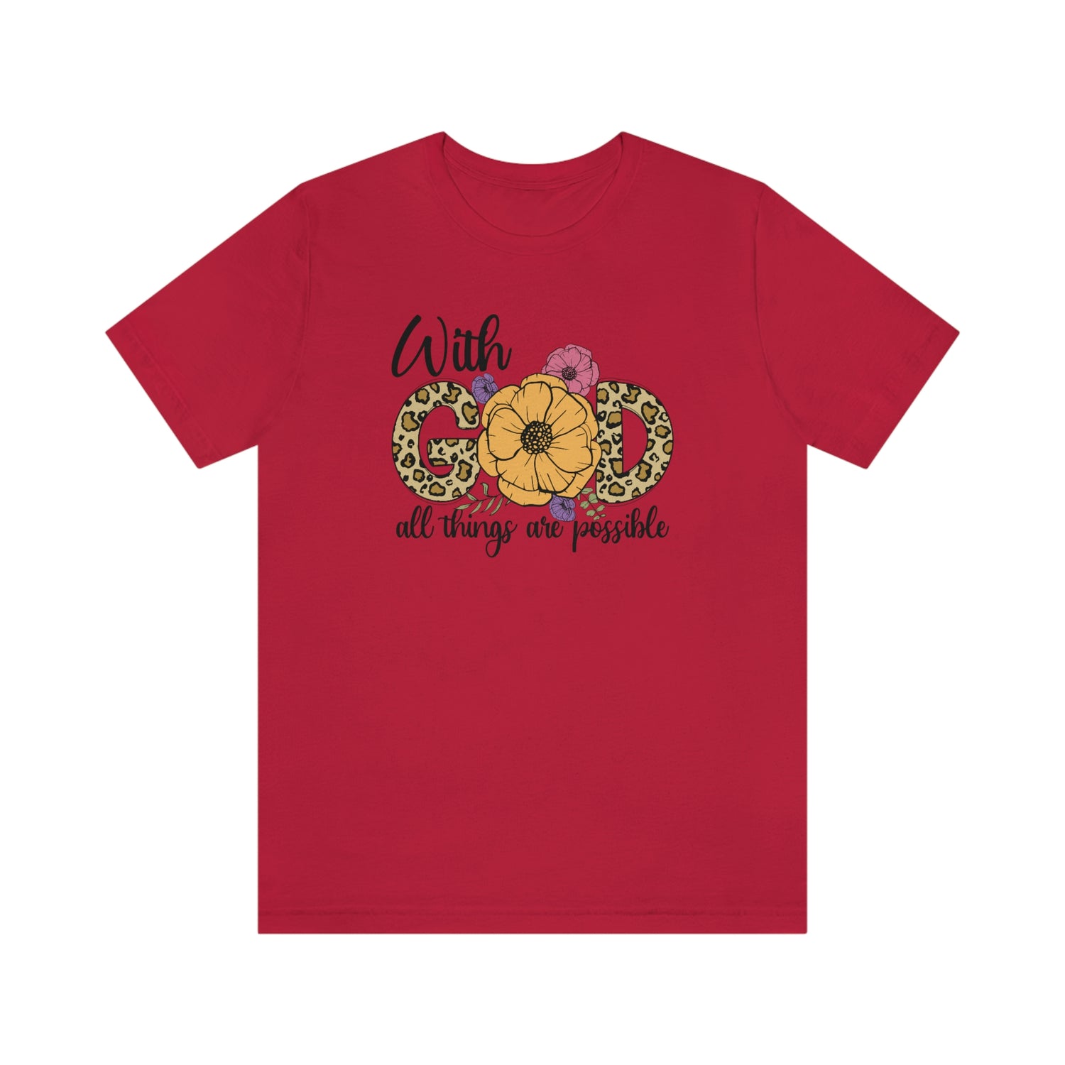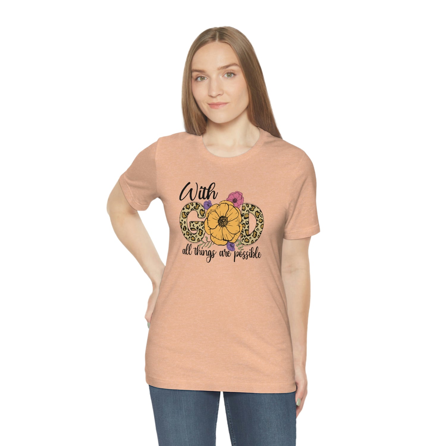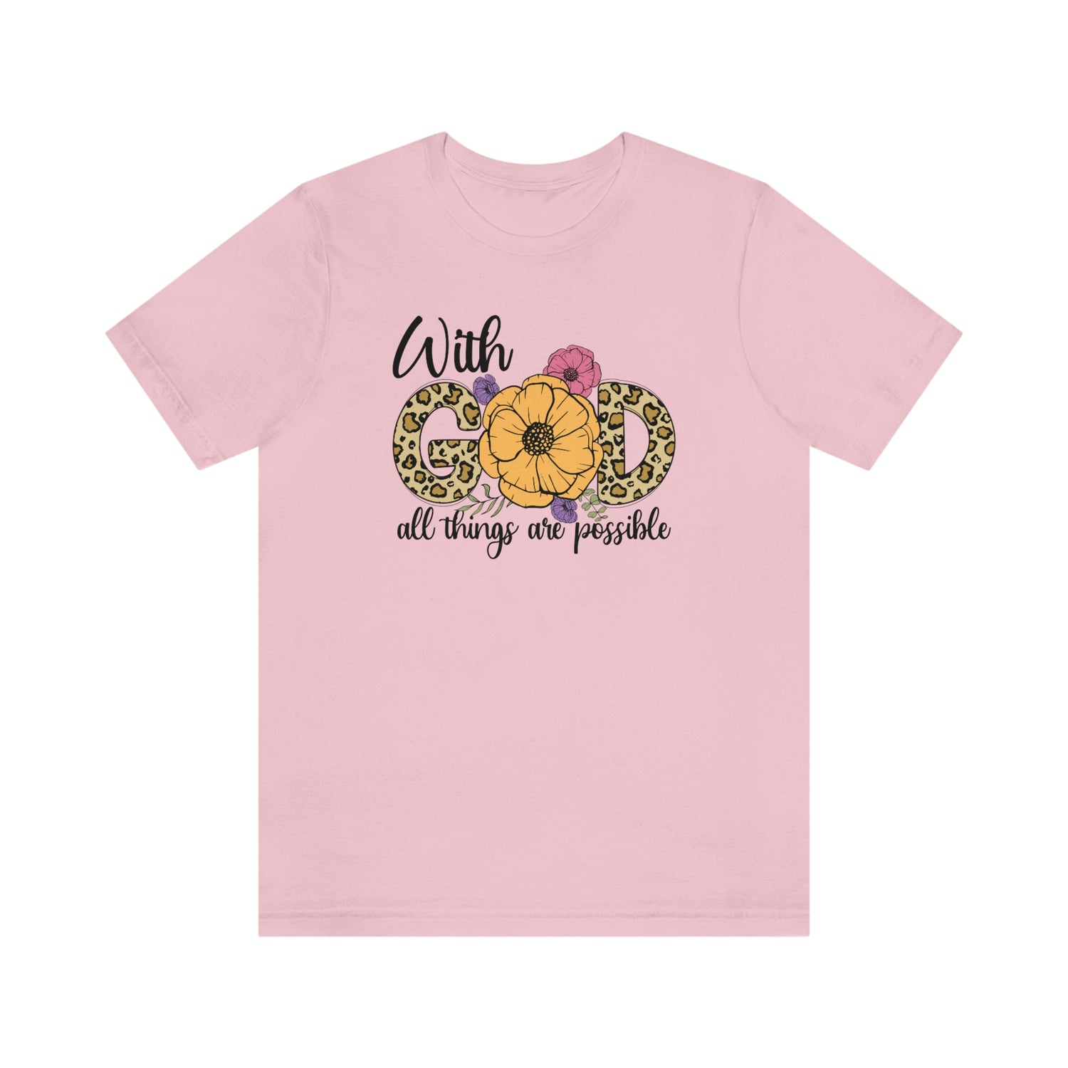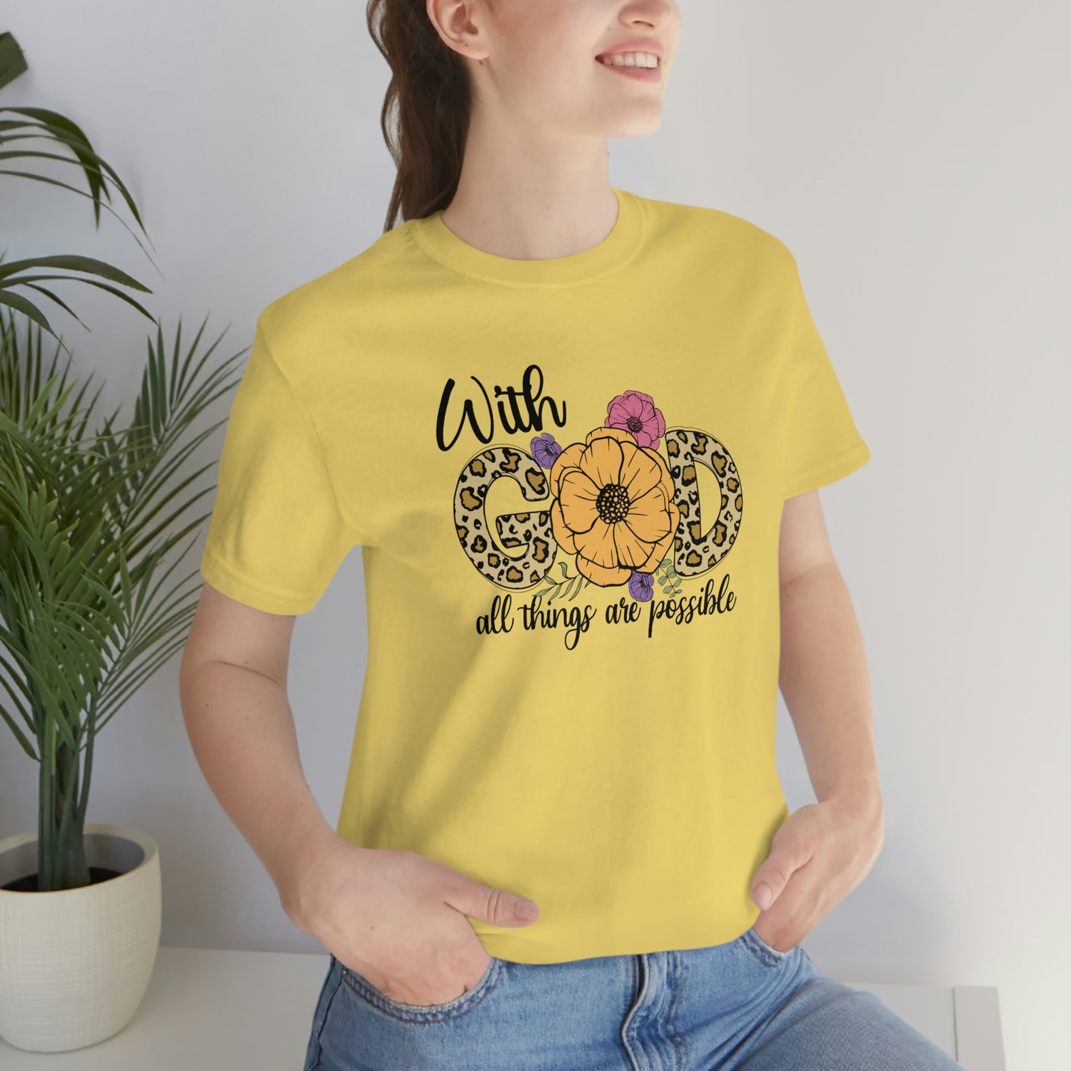 With God All Things Are Possible/ Faith/Christian/ Gift/ Cute Unisex Jersey Short Sleeve Tee Shirt